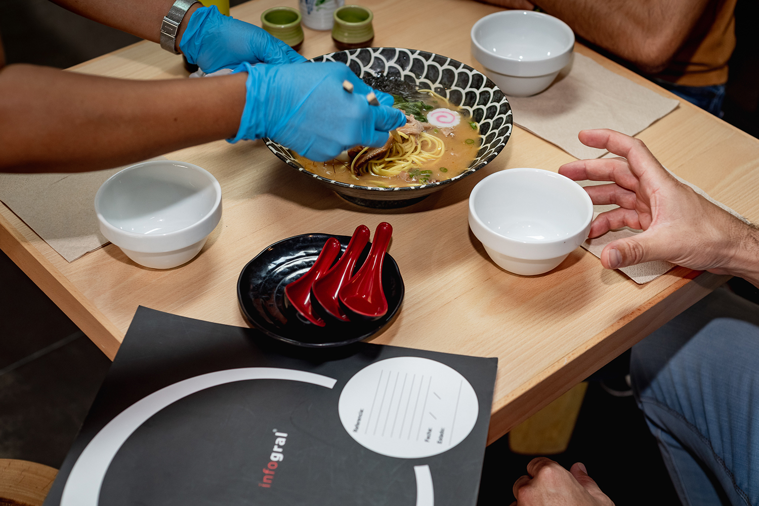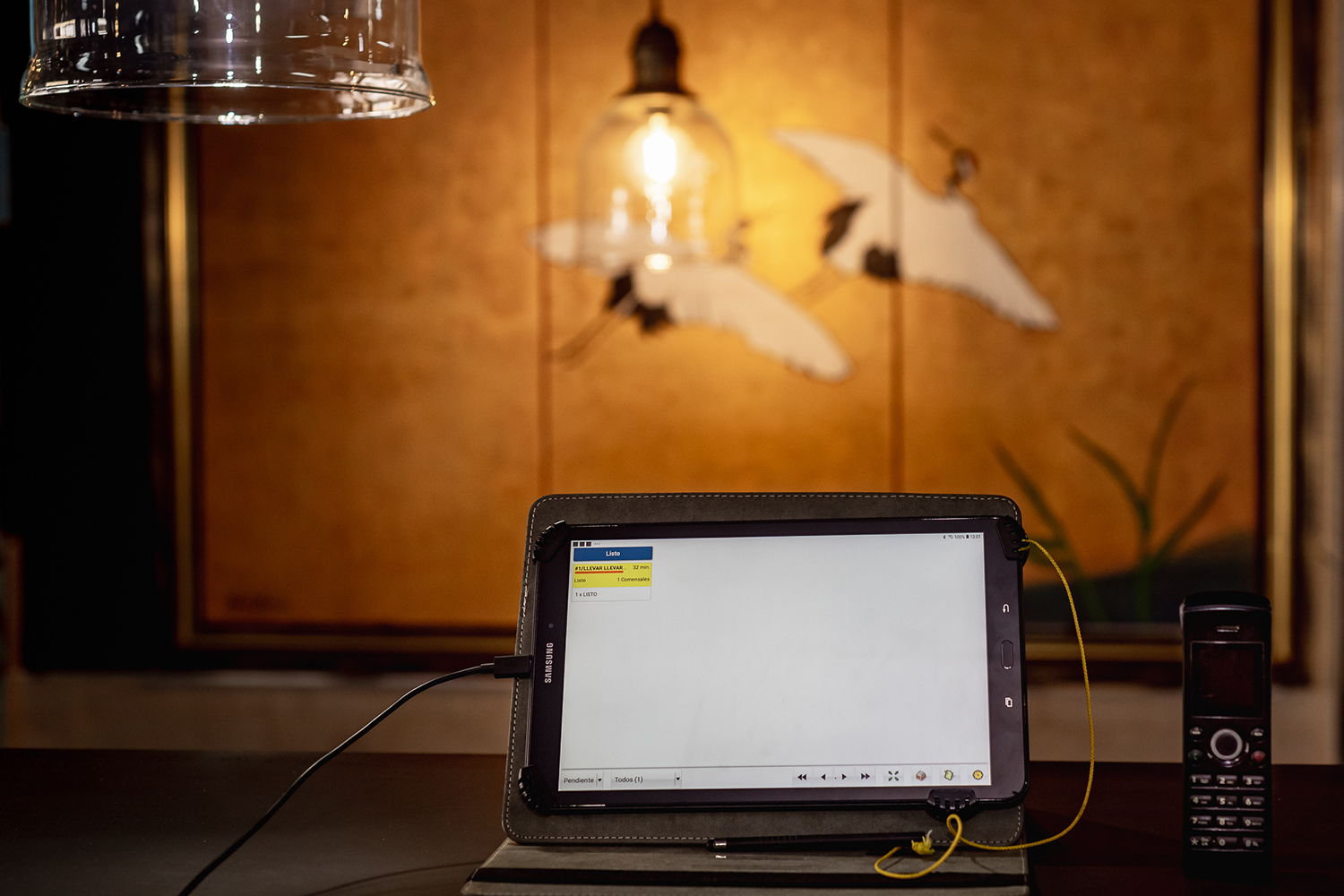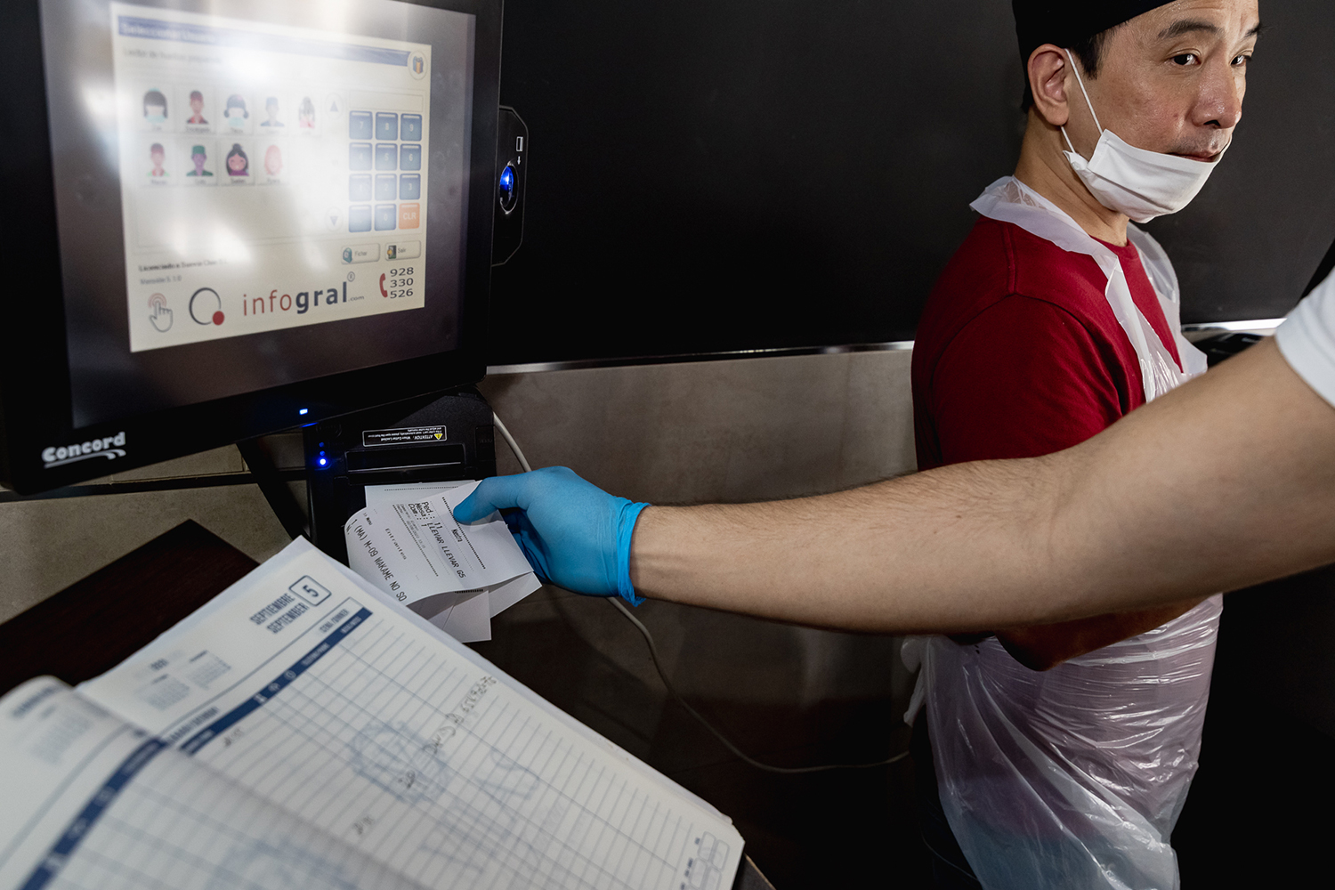 - La cocina se equipa con dos monitores de preparación y varias impresoras térmicas Concord. Los monitores interactivos muestran las comandas en las zonas de preparación sushi y barra indicando el tiempo que lleva pedida cada una, y permitiendo al cocinero ir tachando en la misma pantalla los productos preparados.